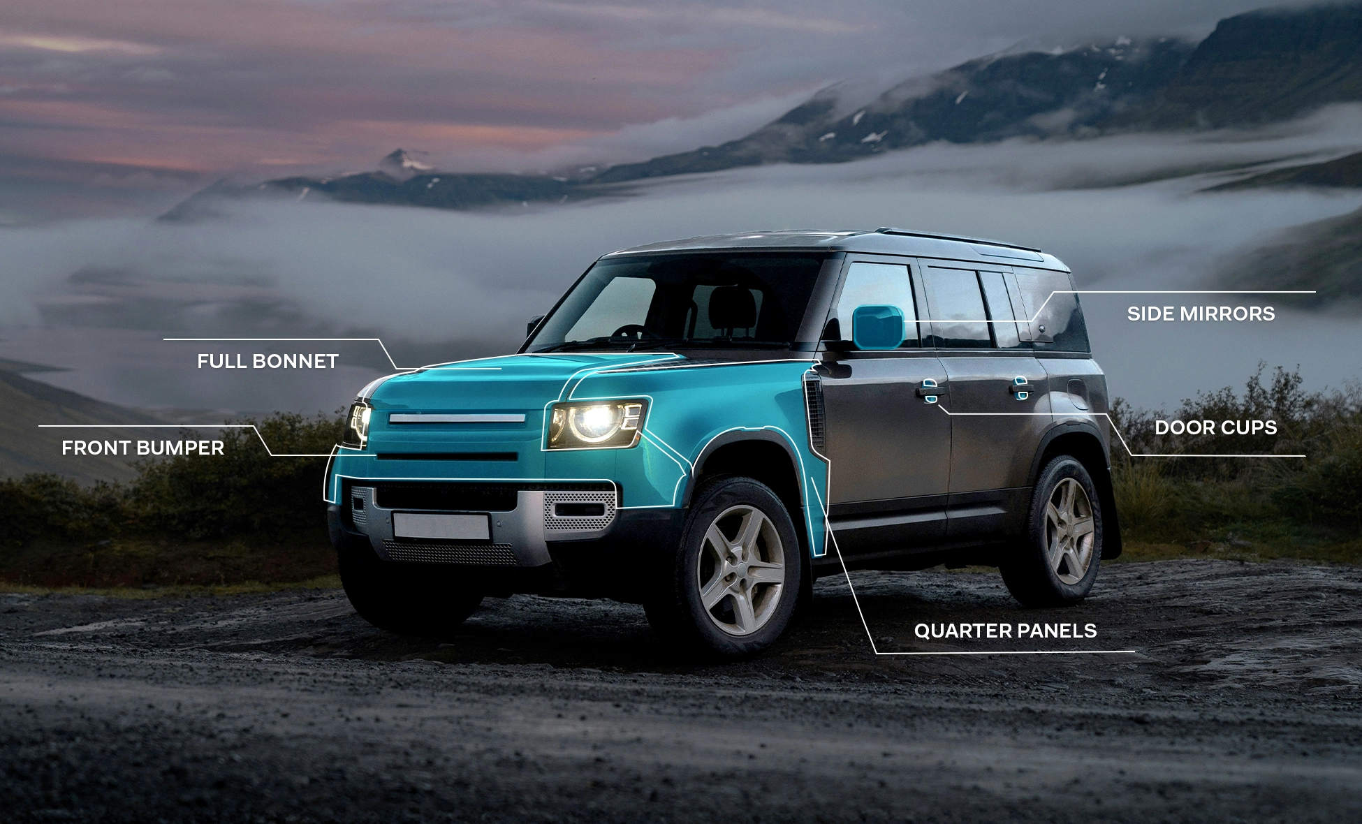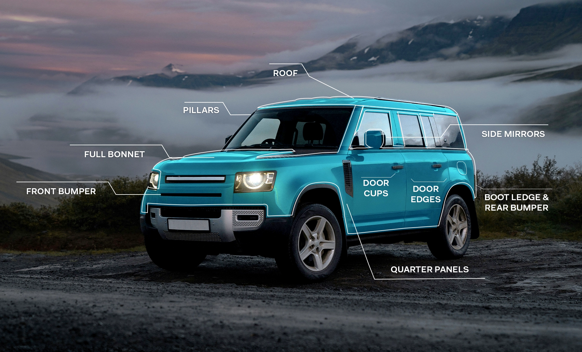 It’s a clear, custom fitted film applied seamlessly to the painted surfaces of your new vehicle, forming an invisible, durable, self-healing layer giving protection against minor scratches and scrapes, road debris and will not discolour.